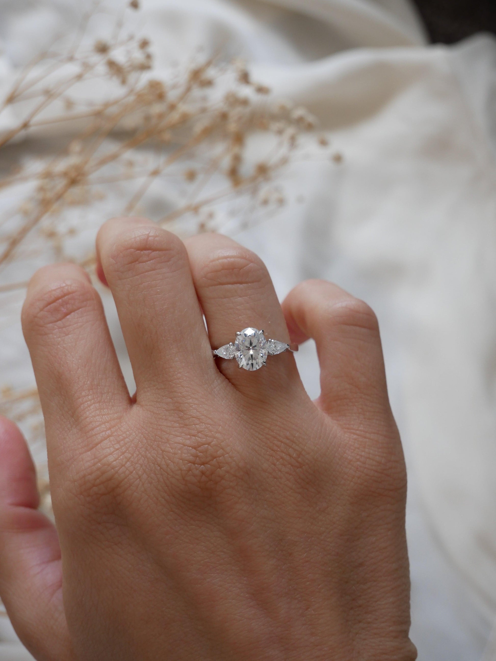 Oval Cut With Pear Accent Stones Moissanite Engagement Ring - Ready To Ship